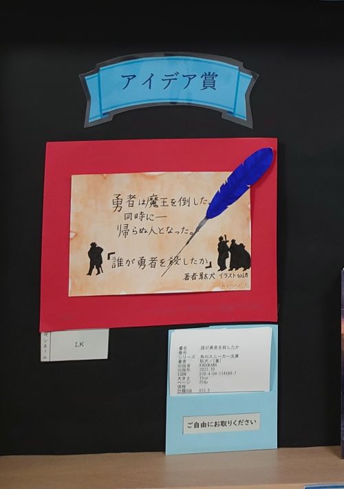 ビブリアメンバーで作成したPOPを本校図書館で展示したのち、京都市中央図書館のPOPコンテストに応募しました。