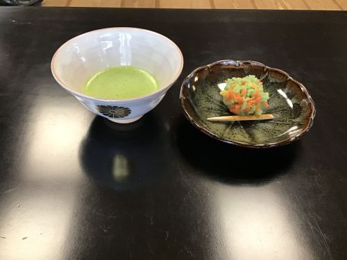 お抹茶の頂き方も丁寧に教えていただきました。生菓子はそのお味はもちろん、美しい見た目でも楽しませてもらいました。