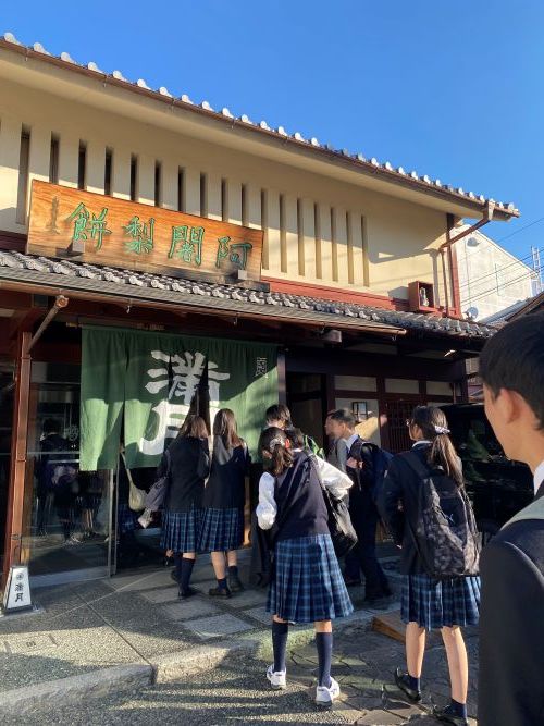 京菓子資料館では、スタッフの方に展示をご説明頂きました。お菓子の歴史クイズでは正解している生徒も多く、「さすが!」の一言です。