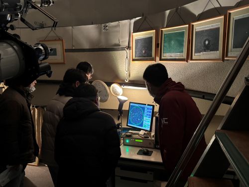 2025年12月27日・28日 天文同好会は京都府立丹波自然運動公園に冬の合宿として行ってきました。曇り空でしたが、「丹波天文館」で天体観測をする時は晴れ間も見え、「月」と「土星」を見ることができました。その後花火を楽しみました。オリオン座も綺麗に見ることができ、思い出に残る合宿となりました。